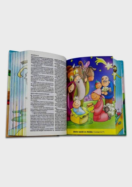 Encartes con 60 ilustraciones a todo color que constituyen un recorrido por la historia de la Salvación que permite a los más pequeños familiarizarse con una visión continuada y coherente de los libros de la Biblia.