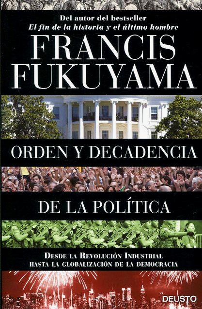 Entre los aspectos que aborda se encuentran las consecuencias de la corrupción en la gobernabilidad y por qué algunas sociedades han tenido éxito en erradicarla, los diferentes legados del colonialismo en América Latina, África y Asia o por qué algunas regiones han prosperado y se desarrollado más rápidamente que otras. Además, Fukuyama se atreve a esbozar a grandes rasgos qué futuro le espera a la democracia en el contexto de una creciente clase media global y la parálisis política arraigada en Occidente. Orden Político y la decadencia política está destinado a convertirse en un clásico.