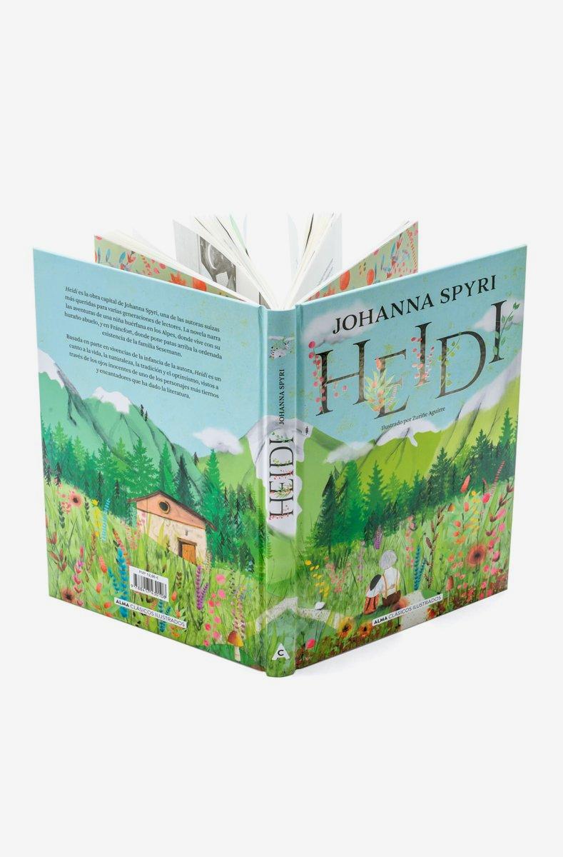 Heidi es la obra capital de Johanna Spyri, una de las autoras suizas más queridas para varias generaciones de lectores. La novela narra las aventuras de una niña huérfana en los Alpes, donde vive con su huraño abuelo, y en Fráncfort, donde pone patas arriba la ordenada existencia de la familia Sesemann.